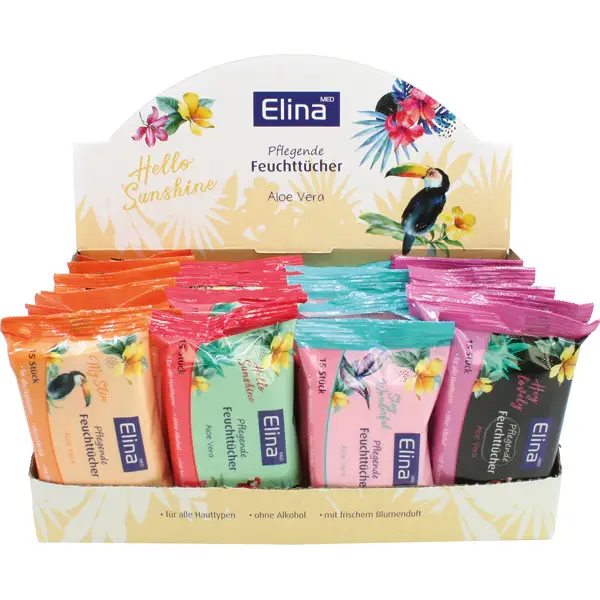 Lingettes 15er Elina lingettes humides 4 Nurturing fois assorti , avec un parfum floral frais dans le 32er Display sans alcool pour tous Hauttyypen