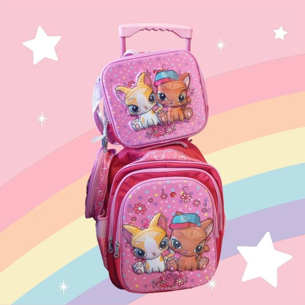 Ensemble de 3 sacs à dos à roulettes pour filles: sac à dos à roulettes: 45x 33 x 18 boîte à lunch: 25x 21x 9 + sac trousse à crayons, ensemble de série chat mignon, offrant plus de choix, de commodité et de bonheur pour vos enfants.
