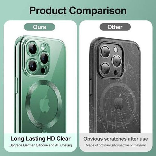 Coque pour iPhone 15 Pro Max avec Cercle Magnétique et Protection Caméra, Coque Rigide Transparent Contour vert