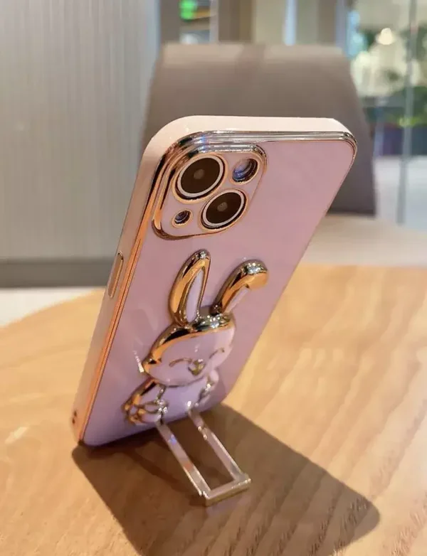 Coque de téléphone iPhone 14 avec support en forme de lapin pour filles